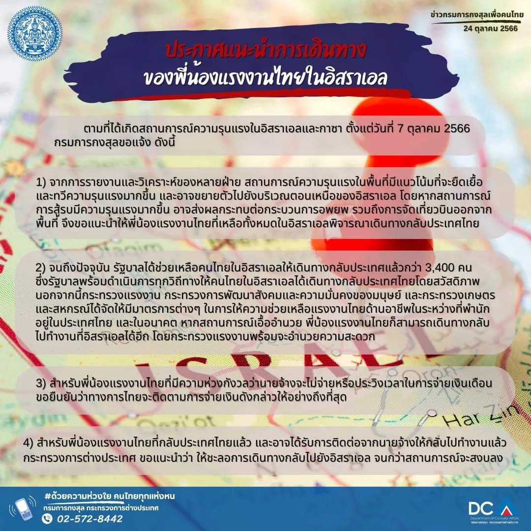 ประกาศแนะนำการเดินทางของพี่น้องแรงงานไทยในอิสราเอล